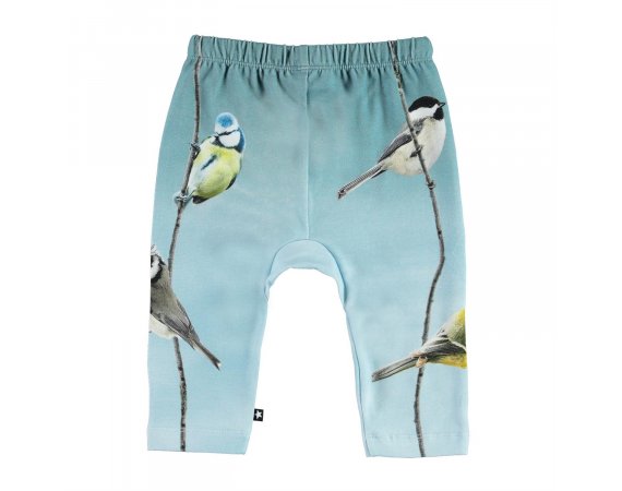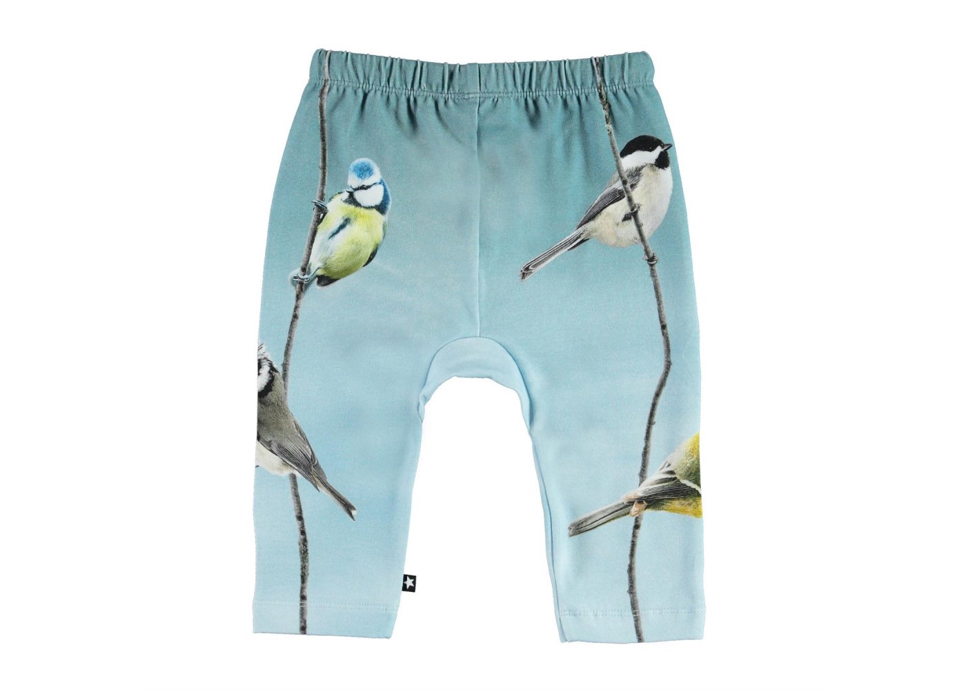 LÊkre lyseblå baby bukser med fugleprint fra Molo