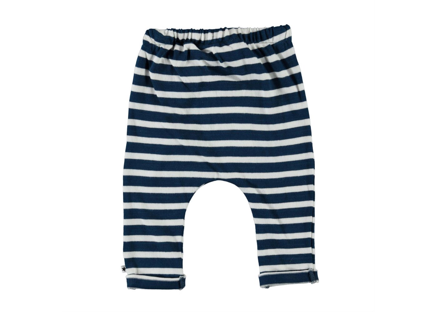 Sigurd er et par maritime baby bukser med hvide og blå striber.
