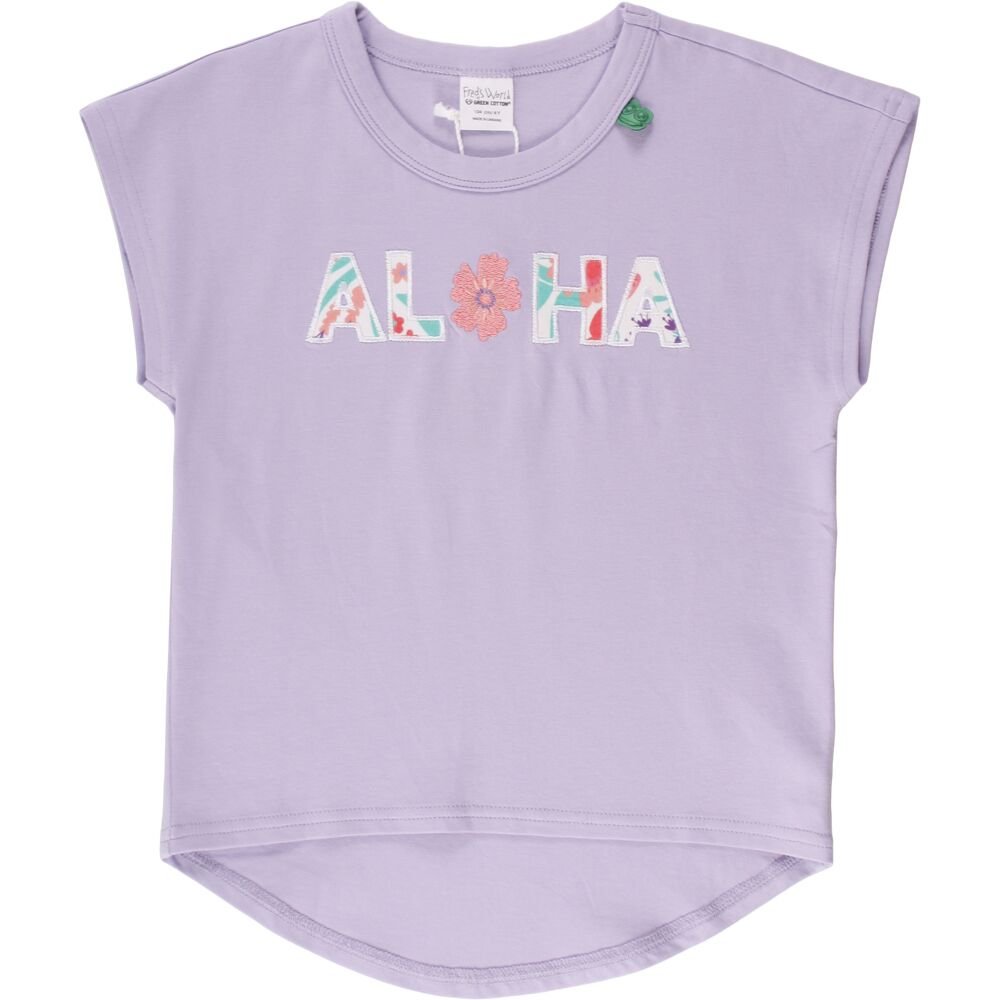 T-shirt med ekstra længde bagpå, et lille ærme og ribkant i halsudskæring og forneden.