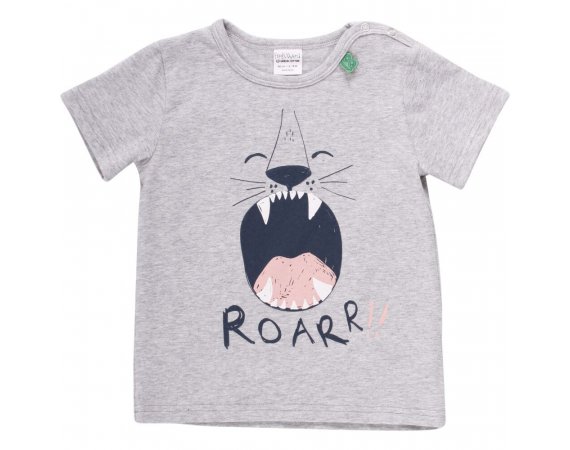 T-shirt med tekst og en brølende løvemund på brystet - Selv om man er lille, kan man godt være sejt klædt på!