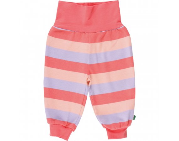Bukser med bred elastik i livet, der kan bukkes efter ønske og bred ribkant ved ankler.