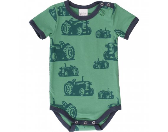 Body med korte ærmer og fast ribkant i halsudskæring og ved ben.