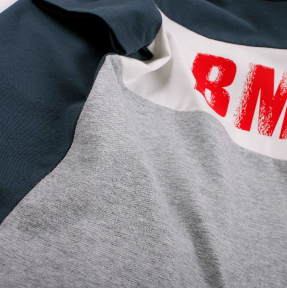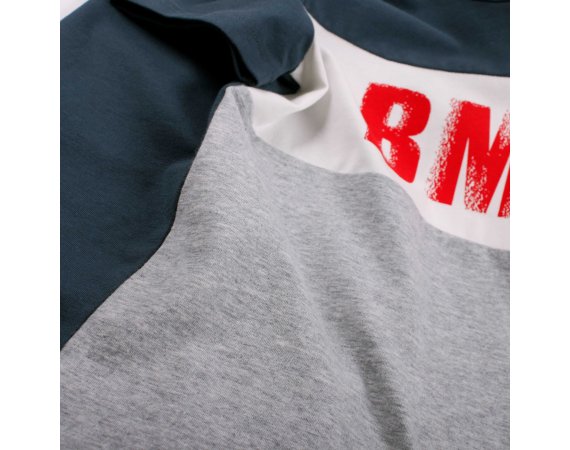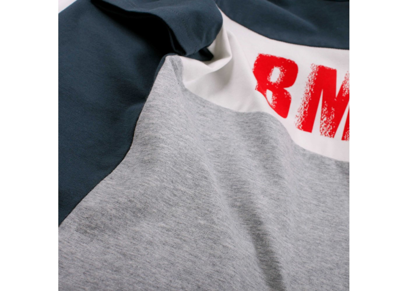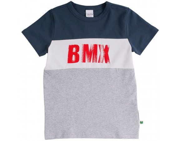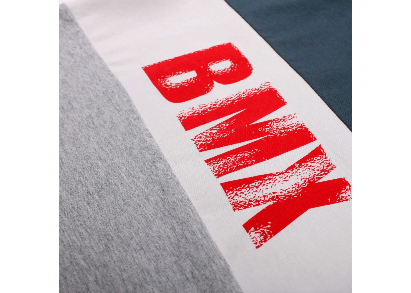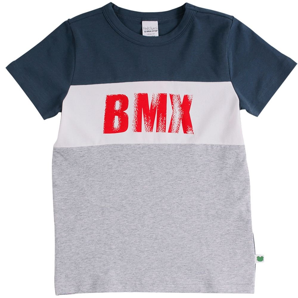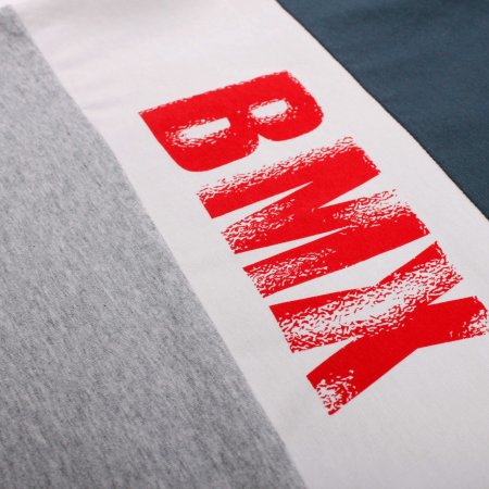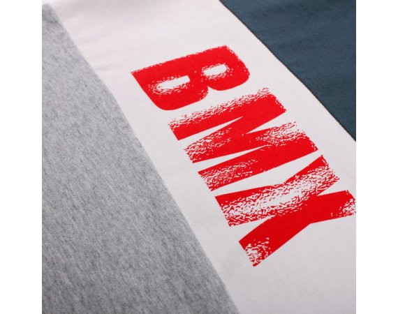 Kortærmet T-shirt med tre farver og flot BMX tekst på brystet. T-shirten er i blød og strækbar kvalitet med fast kant i halsudskæring.