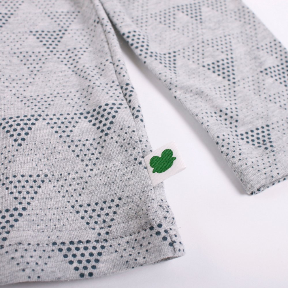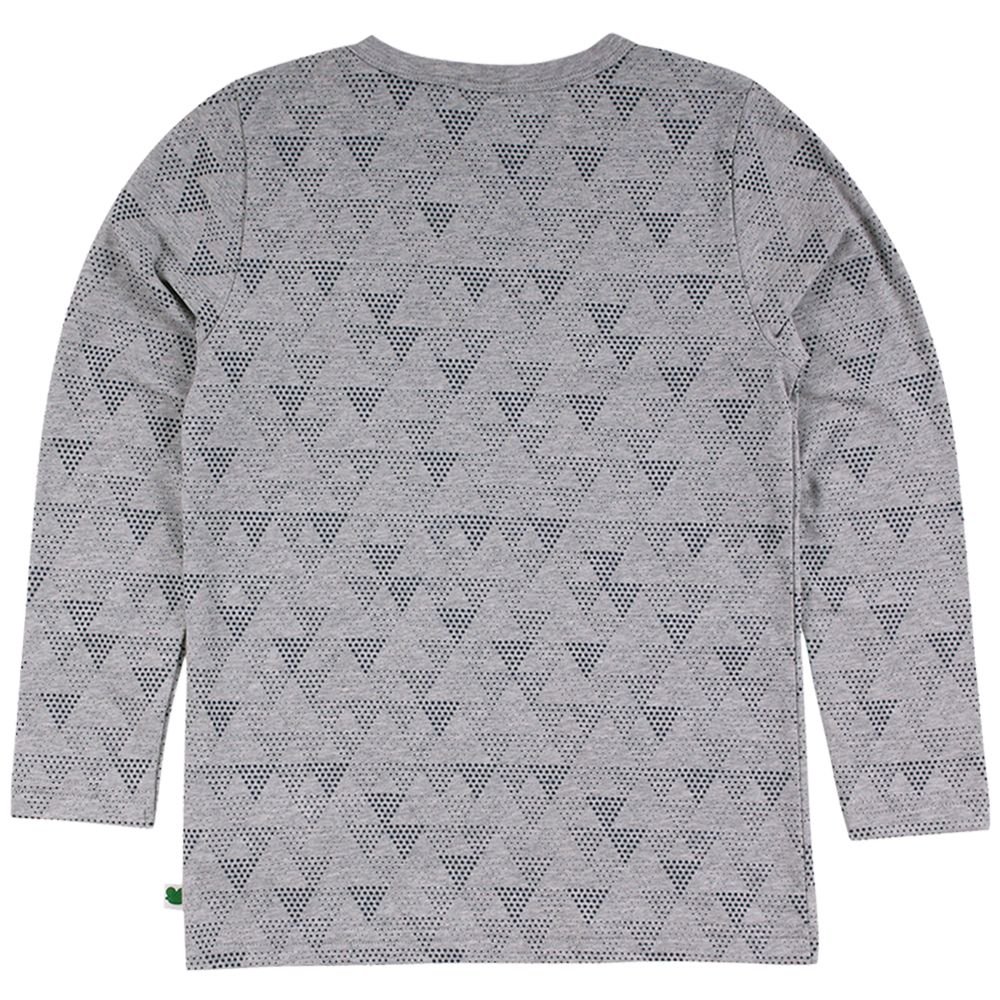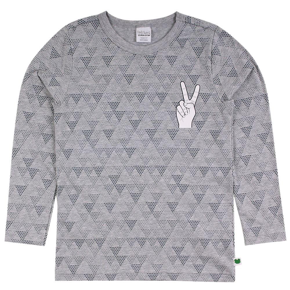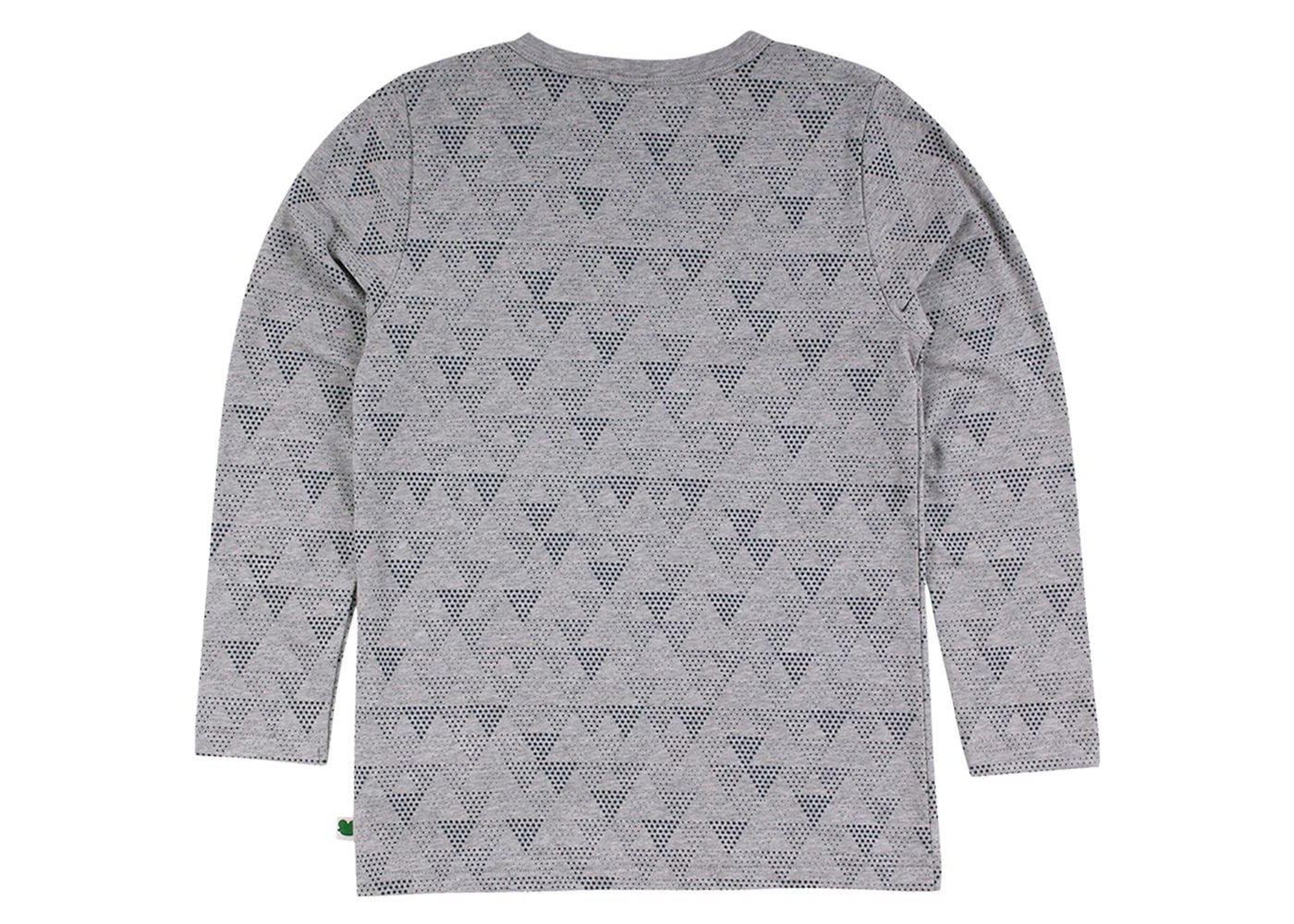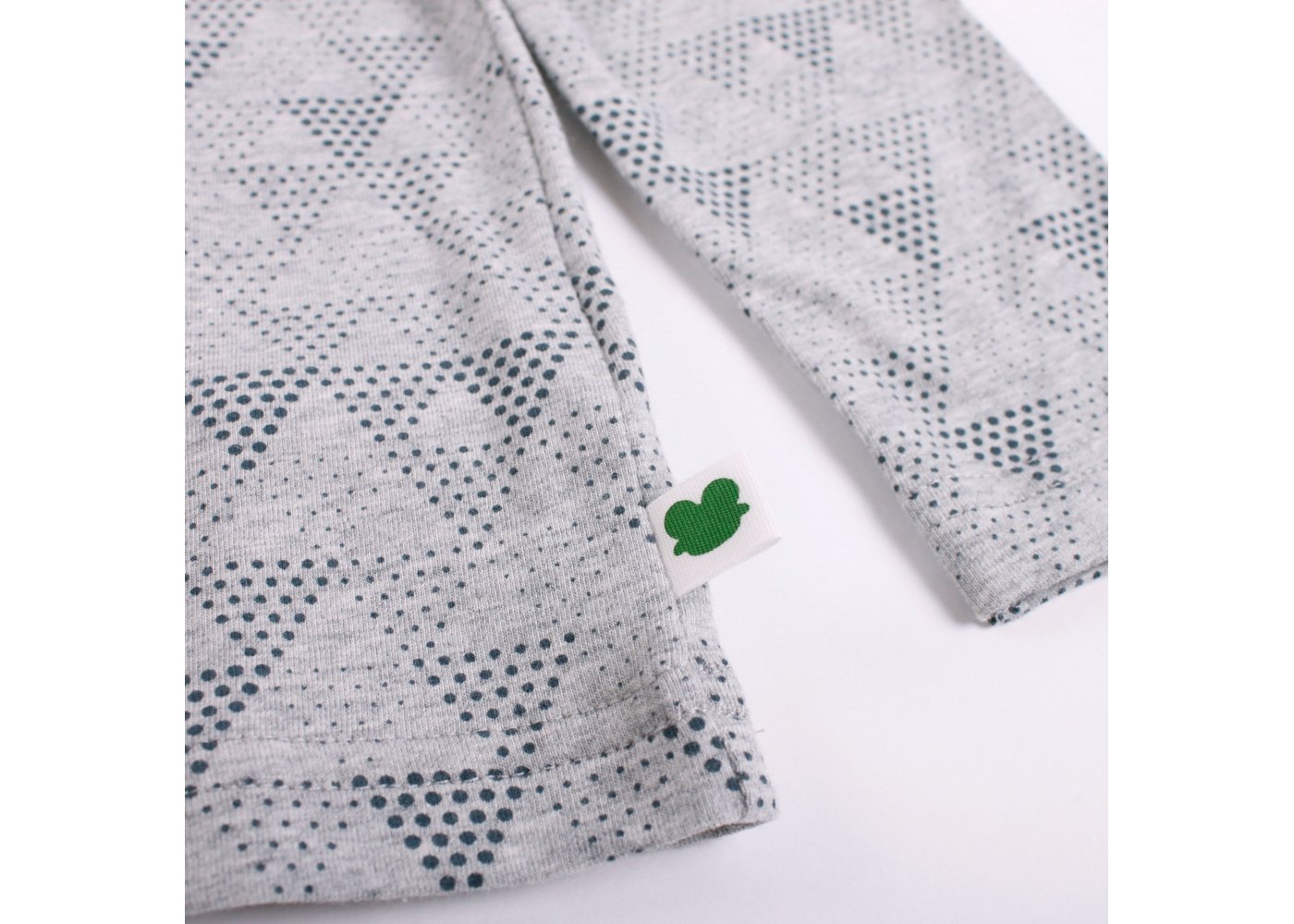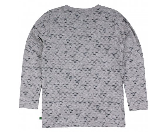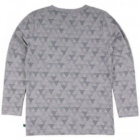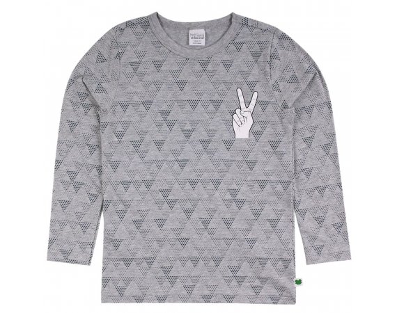 Langærmet grå T-shirt med peace tegn på brystet og print af prik-trekanter over det hele. T-shirten er fremstillet i en lækker, blød og strækbar kvalitet.