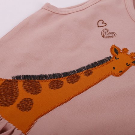Super süßes Sommertop aus weicher und dehnbarer Baumwolle von Freds World. Das Oberteil hat einen feinen Rock und auf der Vorderseite die Stickerei einer Giraffe mit Mähne aus langen Nähfäden. Ein süßes und lustiges Neckholder-Top, das die meisten kleinen Mädchen begeistern wird.