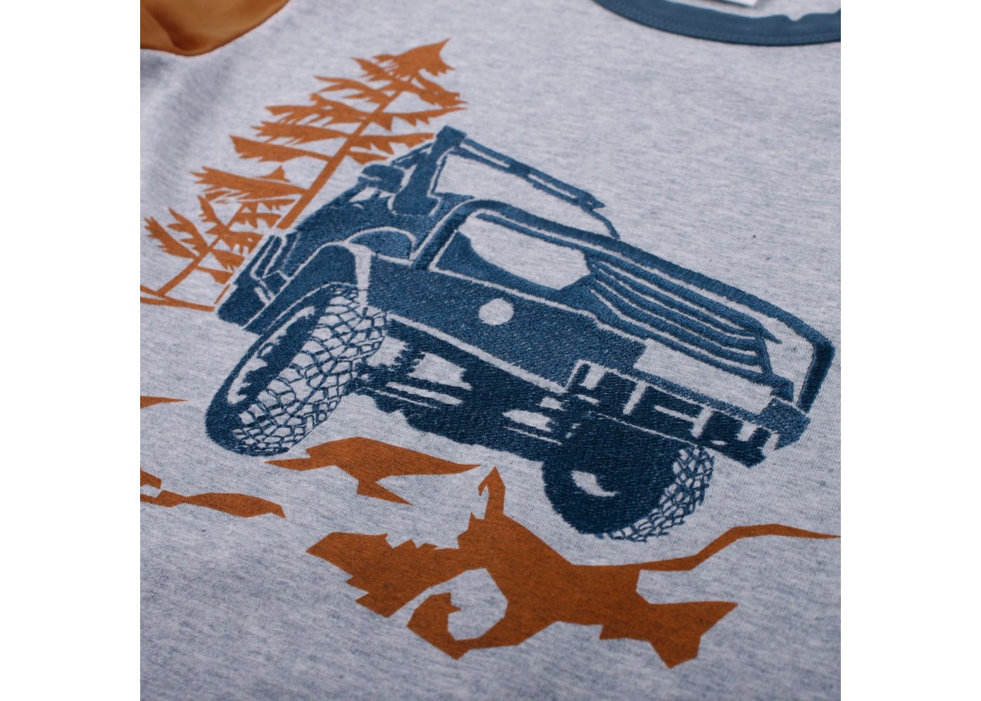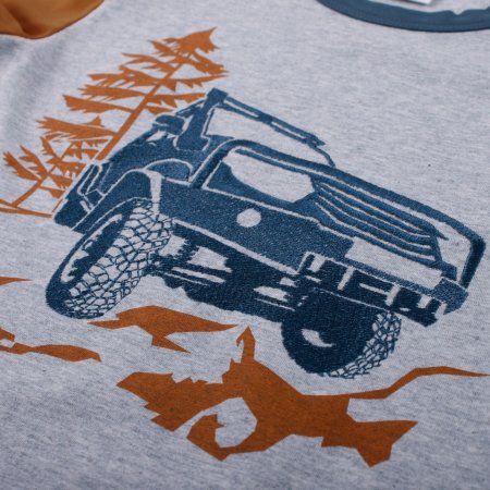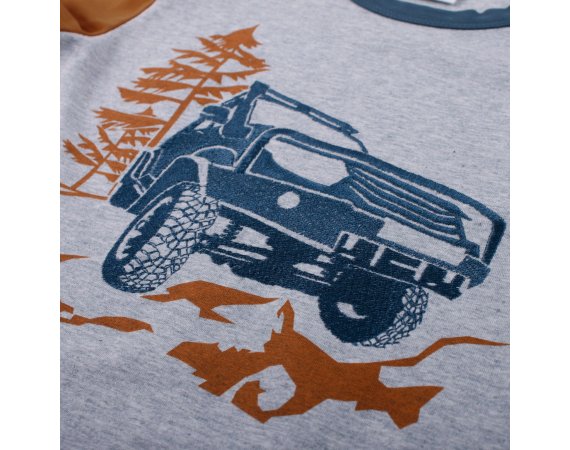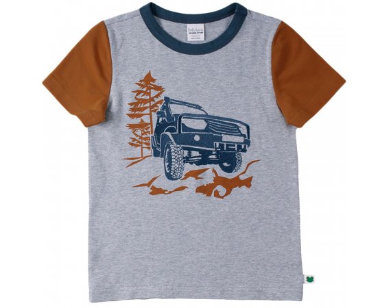 Lækker T-shirt i blød og strækbar kvalitet fra Freds World. T-shirten er kortærmet, har off road broderi af en jeep foran og en fin ribkant i kontrastfarve i halsudskæring.