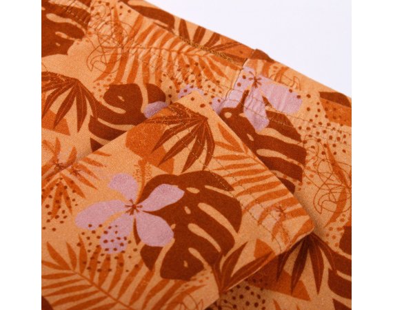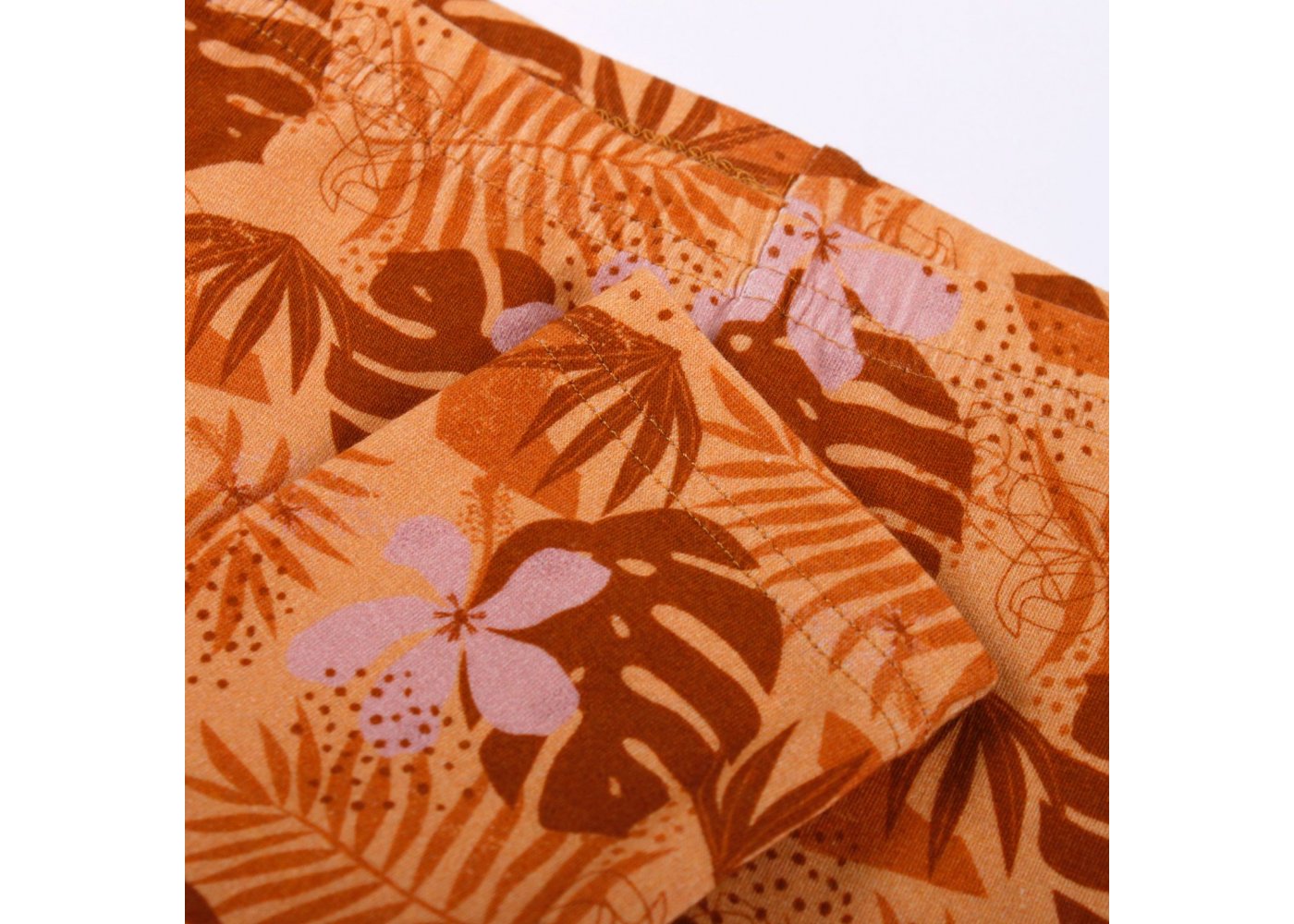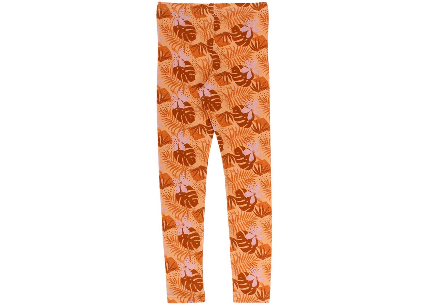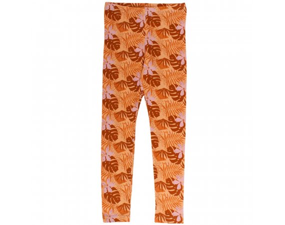 Super skønne og seje leggings med safari print af blade og blomster i brændte farver. Bukserne har elastik i talje og er fremstillet i en skøn strækbar bomuldskvalitet.
