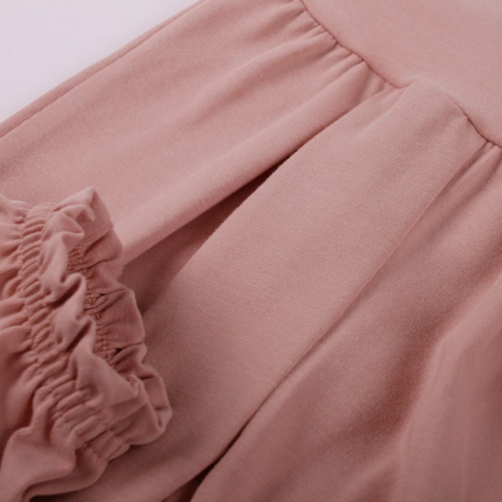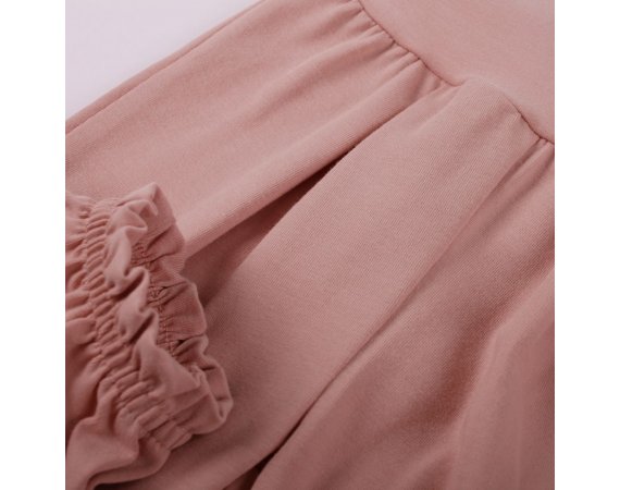 Søde feminine bukser i blød og strækbar bomulds kvalitet. Buksen har rynk ved ankler og læg i livet, der går op til en elastisk kant foroven. Den elastiske kant gør bukserne behagelige at have på.