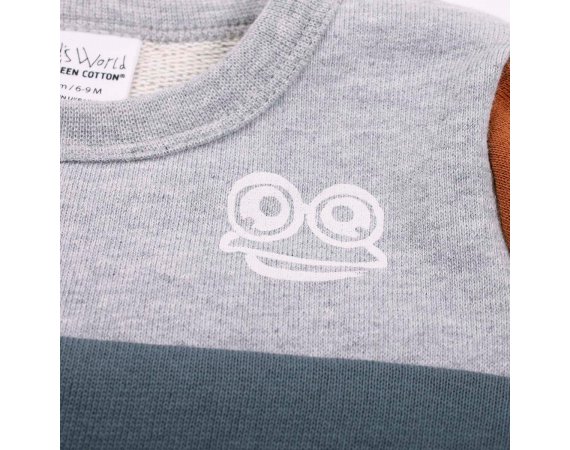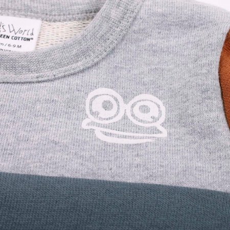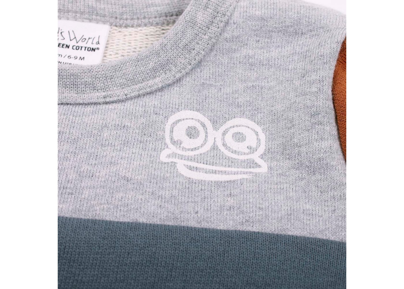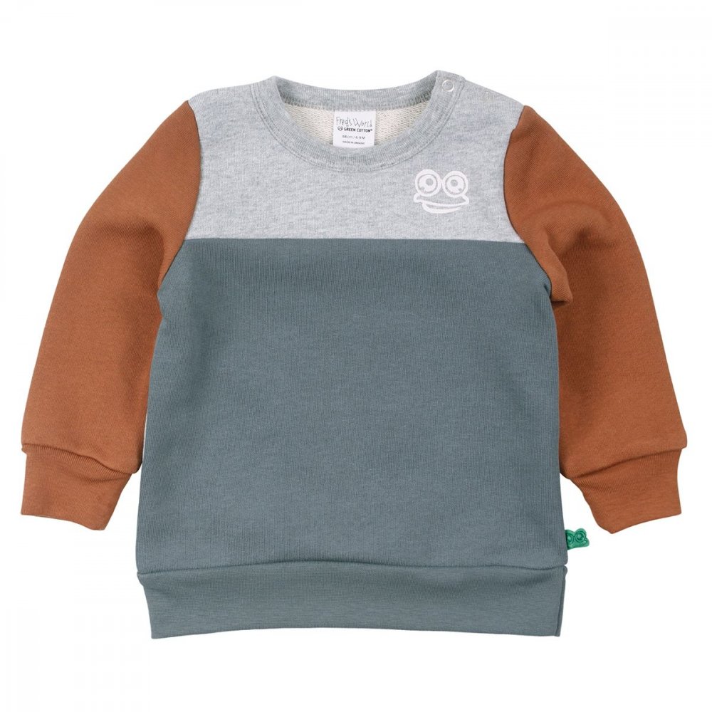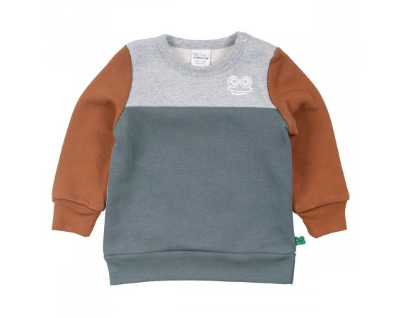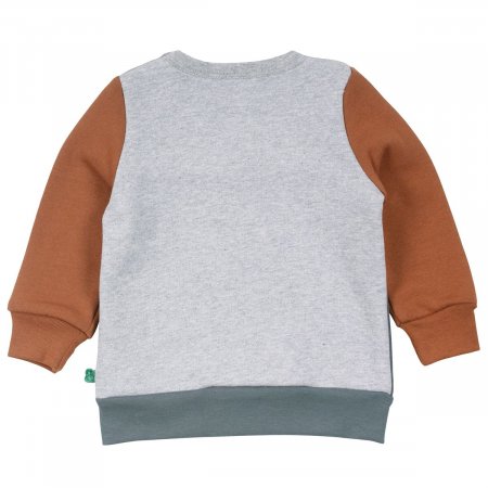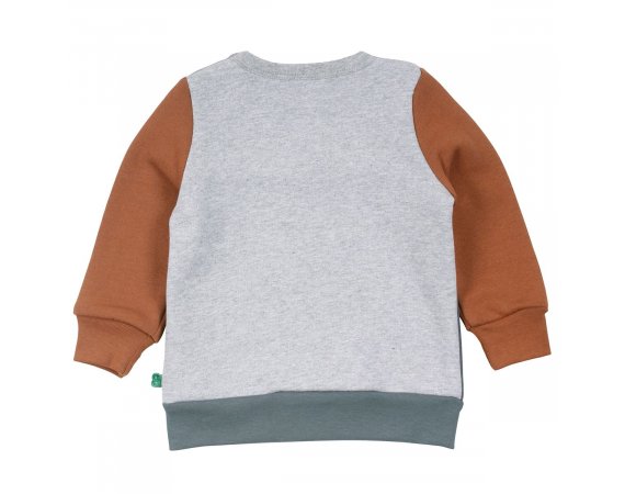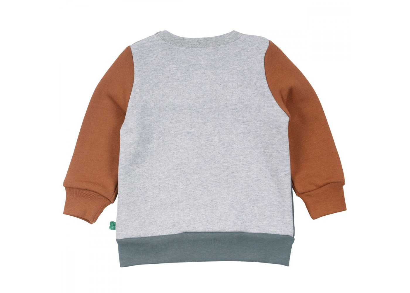Super sød sweatshirt i brun, lys- og mørkegrå med Fred's Logo applikation foran.