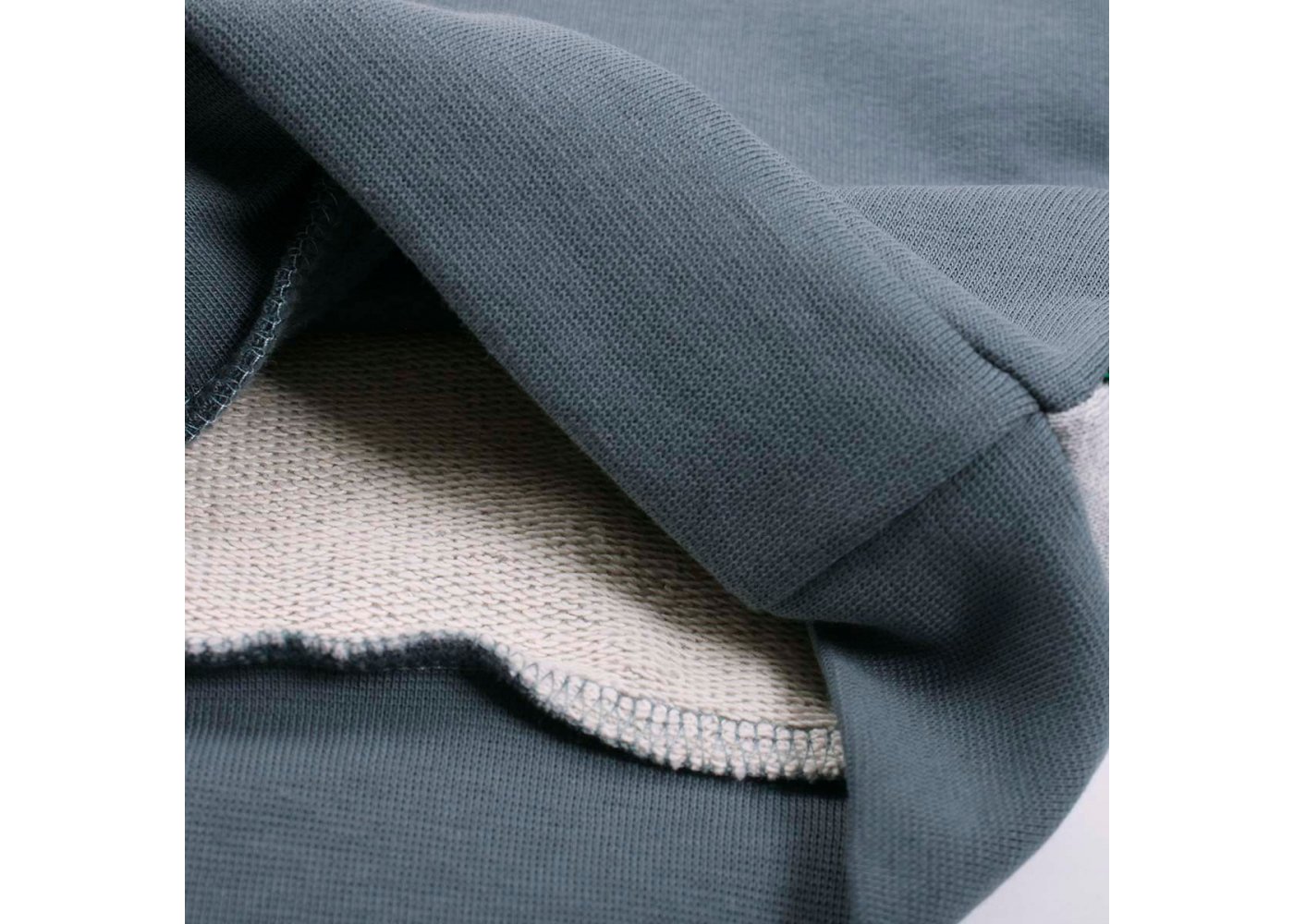Sweatshirten er fremstillet i den skønneste strækbare bomuldskvalitet, der giver god pasform og bevægelighed. Den lukkes med trykknapper på vestre skulder.