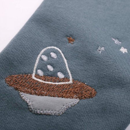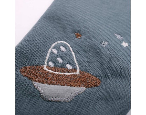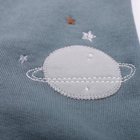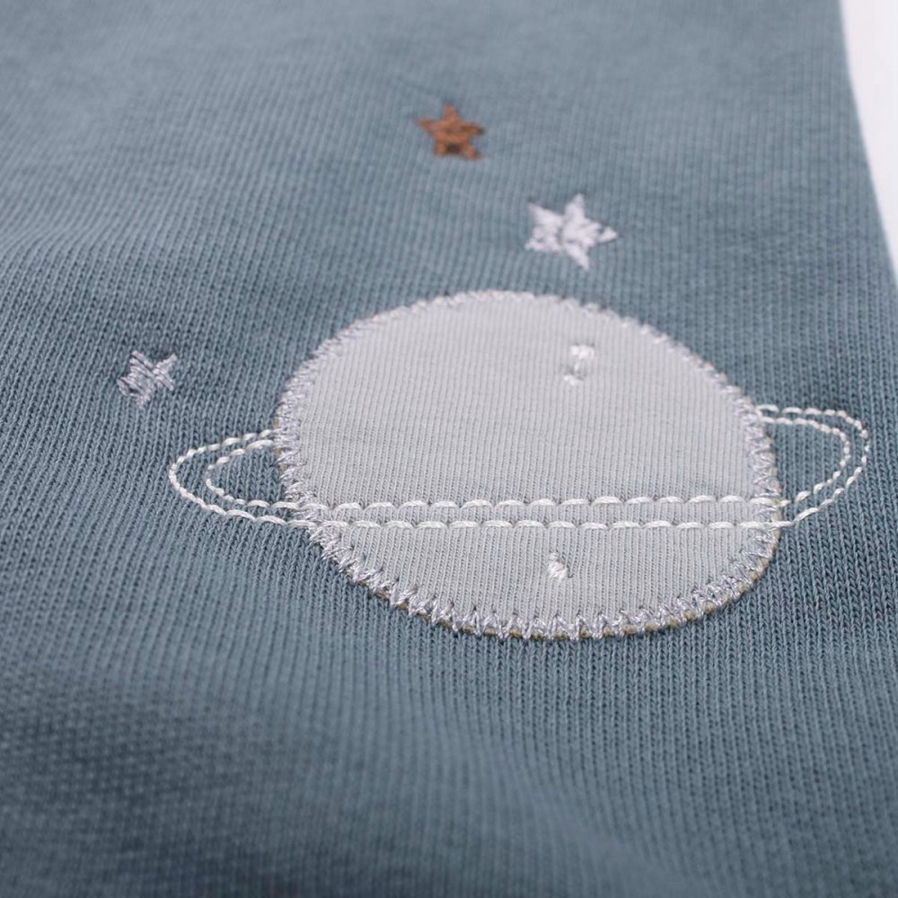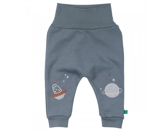 Lækre løse bukser i blå med skønt rum-tema på knæ fra Fred's World.