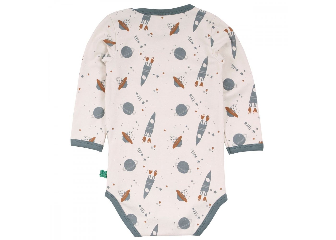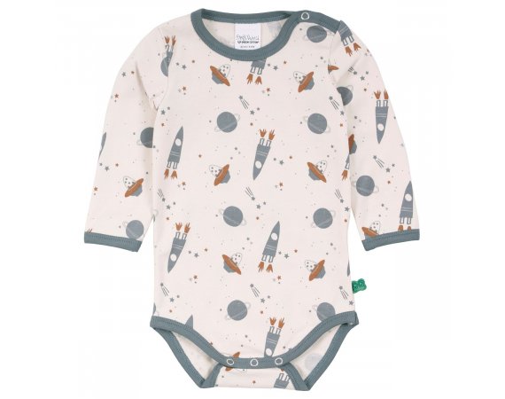 Weißer Bodysuit mit schönem Weltraummotiv von Fred's World.