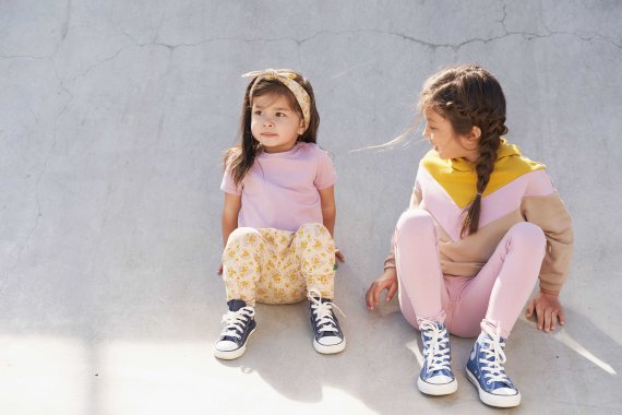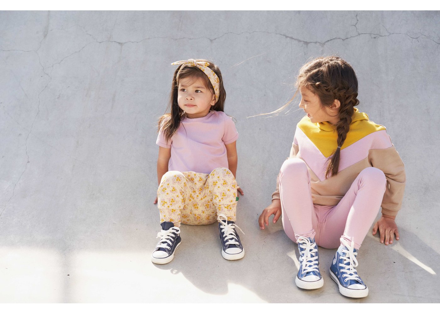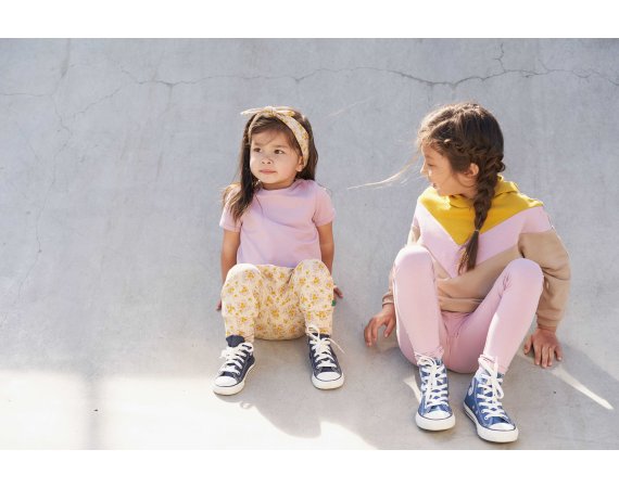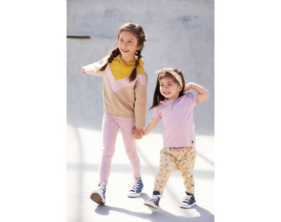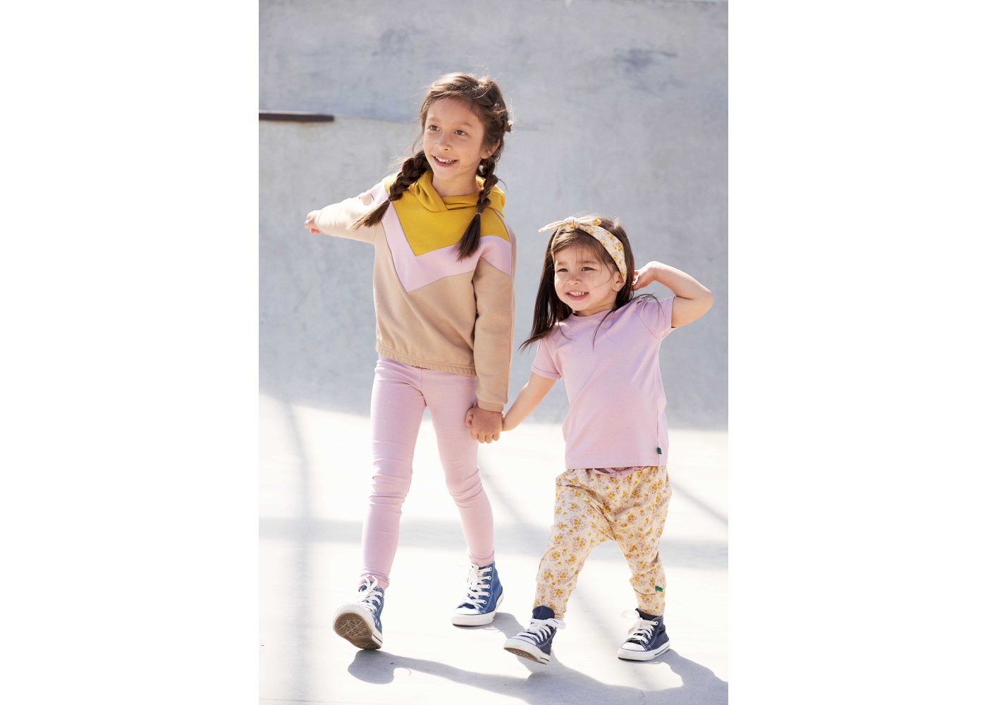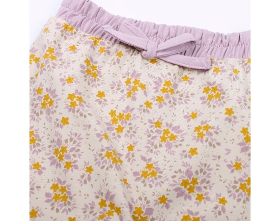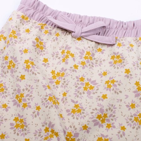 Bukserne har elastik i taljen og en sød pyntesløjfe fortil. De har ekstra vidde bagpå, og en høj ribkant ved ankler, som er med til at give dem en super fed baggy effekt.