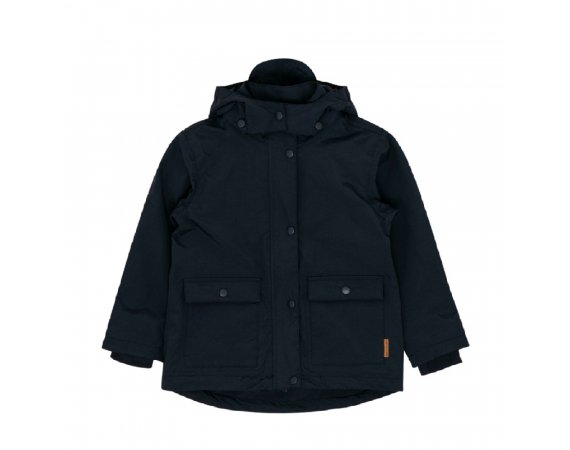 Fuldt foret jakke med aftagelig hætte og lommer fortil.