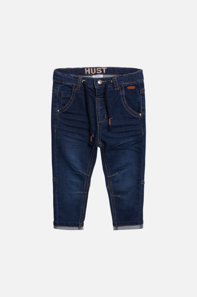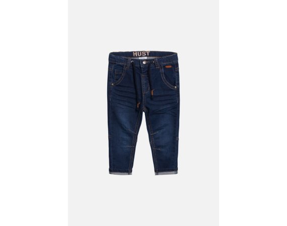 Bukser med elastik i taljen med et justerbart bindebånd. Buksen har lommer foran og bagpå. Desuden overskæring på buksebenet bagtil. De er fremstillet i et blød og strækbart bomuldsstof.
