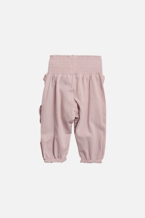 Skønne bukser i lækker bomuldskvalitet med flæser foran ned langs ydre bukseben og elastik ved ankler. Bukserne har en sød guld-detalje nederst på højre ben og er fremstillet i et blød og lækkert bomuldsstof.