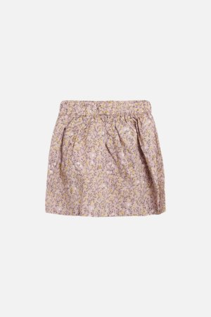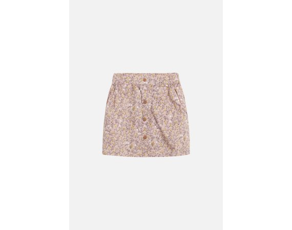 Nederdel med pynteknapper ned midt for og en bred justerbar elastik, der rynker sammen bagpå.