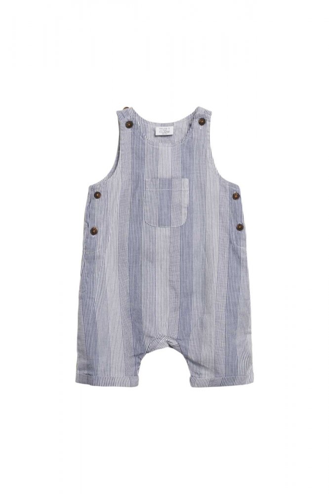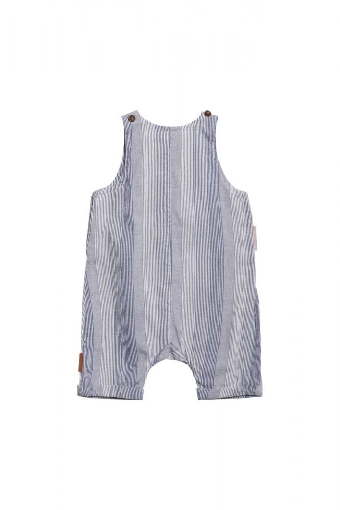 Baggy striped overalls with a pocket at the chest