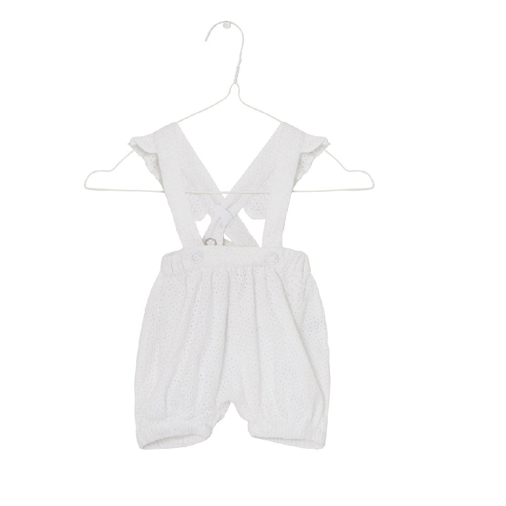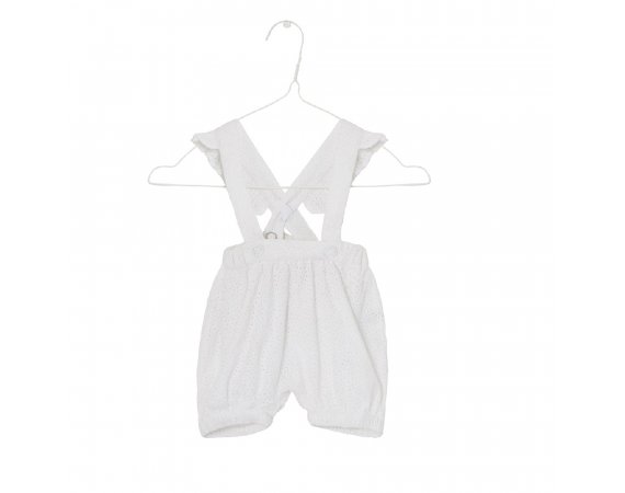Bukserne er med sødt hulmønster og har krydsende stropper bag på ryggen og har søde flæser og elastik i livet.