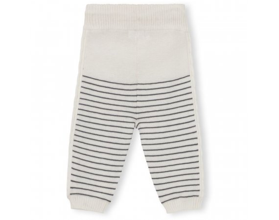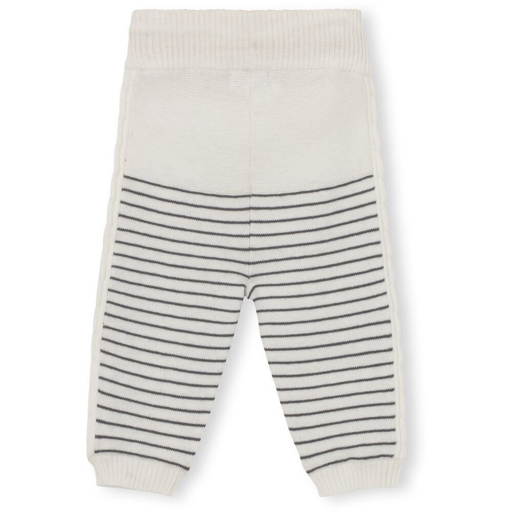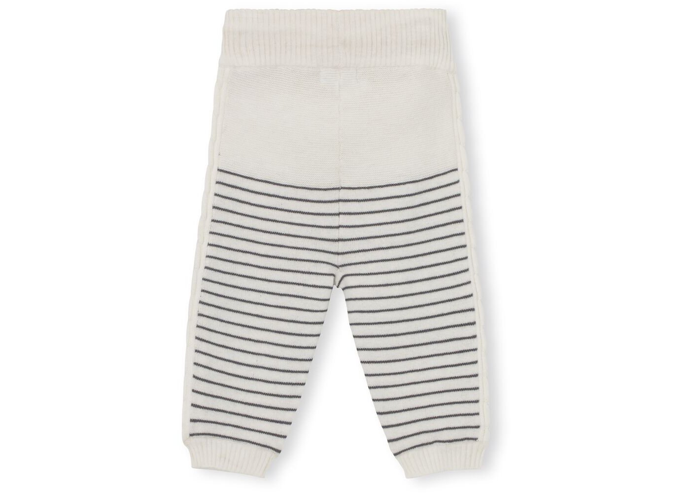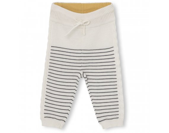 Varme og bredt anvendelige bukser med striber og snoet strikmønster ned langs siderne. Buksen har ribkant med kontrastfarve på indersiden i livet og ribkant ved ankler.