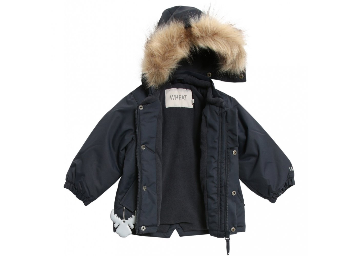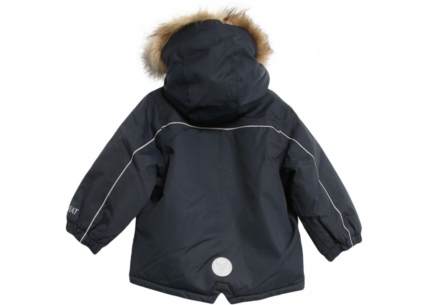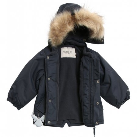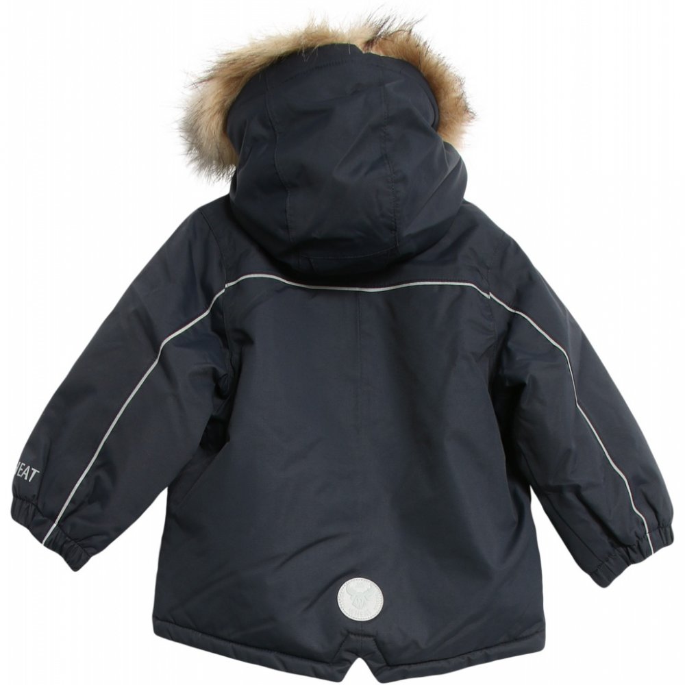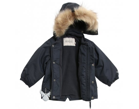 Jakken er i et slidstærkt, vandtæt og åndbart tekstil med aftagelig kunstpels hætte med knapper, velcro og elastiksnor.