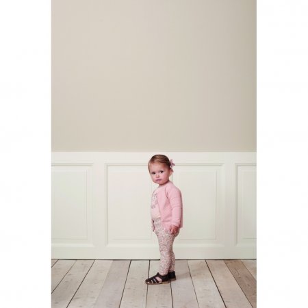 The trousers have an elastic waistband and are made from a soft, organic cotton mix.