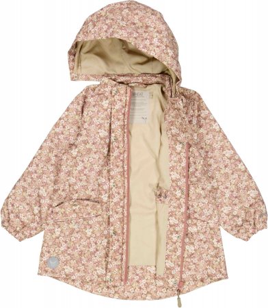 Skøn forårs- og sommerjakke med sødt blomsterprint. Jakken har et A-formet snit, der giver den et feminint look. Den har elastik ved håndled og påsyede lommer. Jakken har en aftagelig og justerbar hætte, lynlås og knapper foran. Den har elastik i taljen, som kan justeres og tilpasses det enkelte barn. Jakken er produceret i 100% genanvendeligt polyester og har fine elg og logo refleksdetaljer.