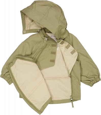 The jacket is made in 100% recyclable polyester, and has a cute moose reflector on a string.