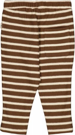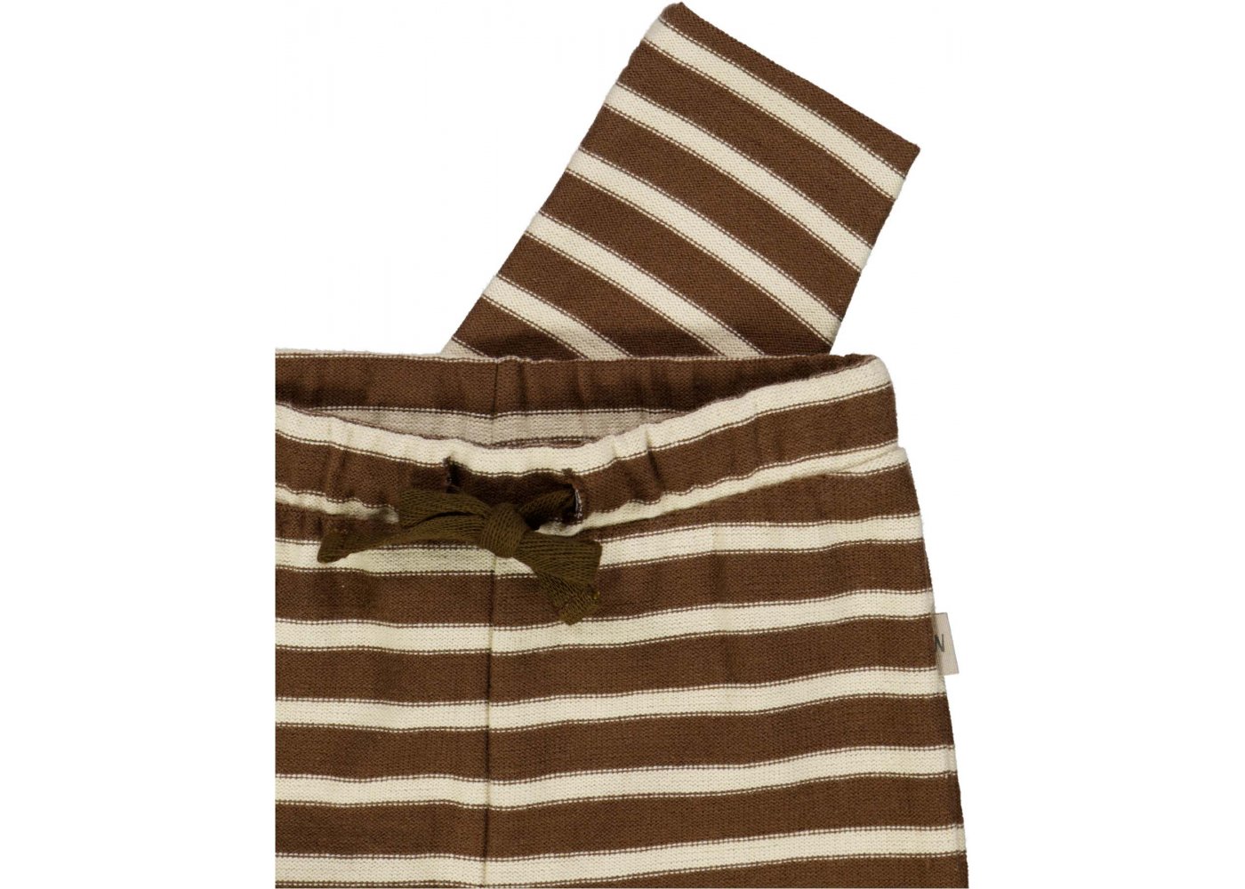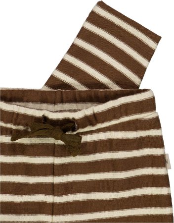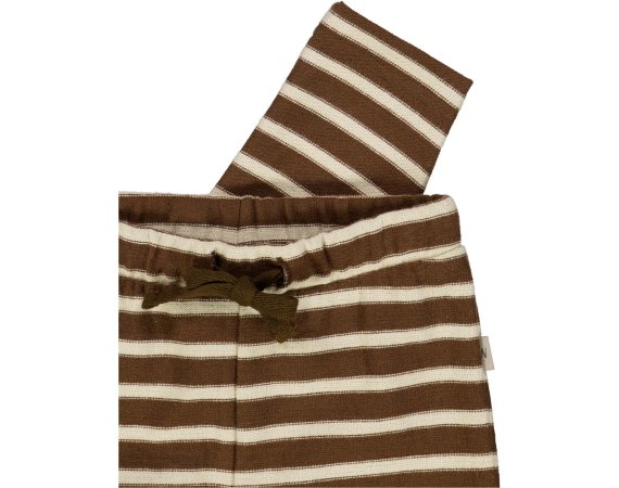 Buksen er i brun- og off white, og har elastik med bindebånd i talje.