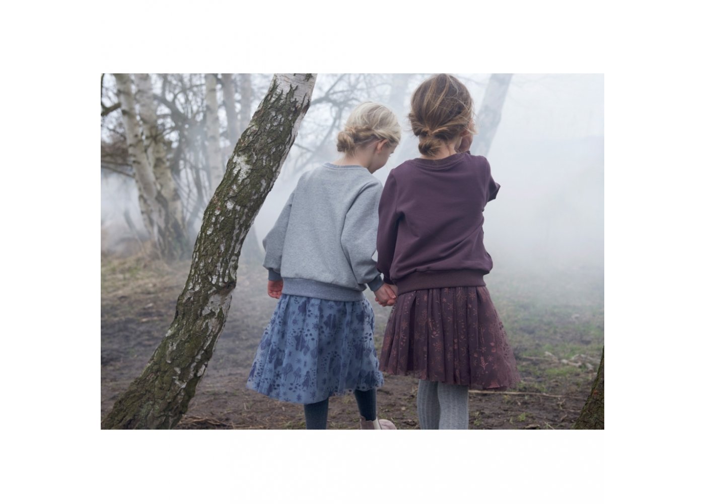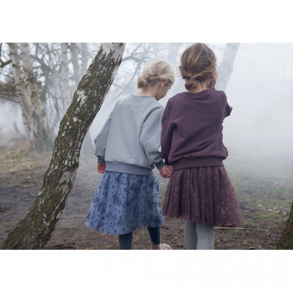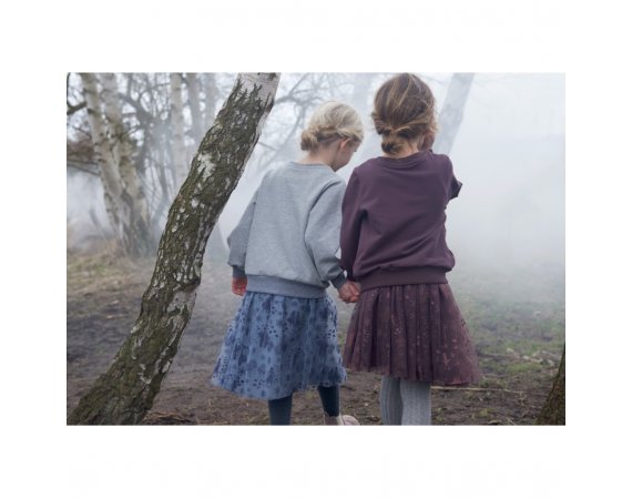 Sweatshirten har lommer i siden, glimmer ribkant i hals, og bred glimmer ribkant i ærmer og liv.
