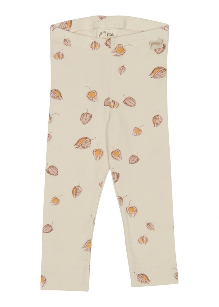 Fine leggings i creme farve med ananaskirsebær i orange-lilla farve fra Petit Piao.