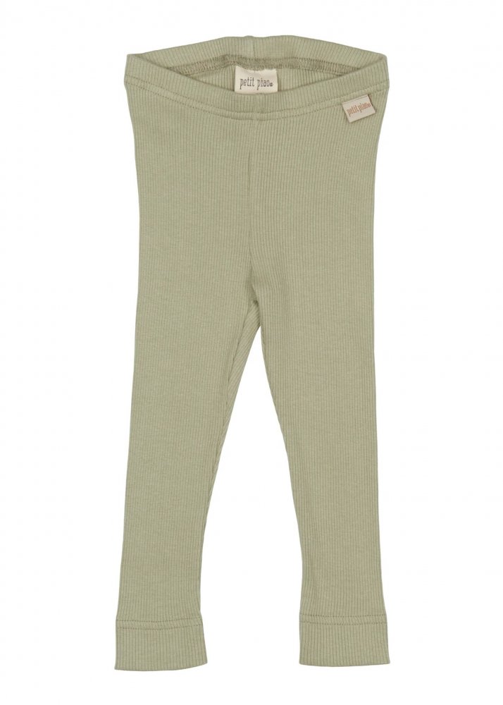Skønne ensfarvede rib leggings i støvet grøn farve fra Petit Piao.