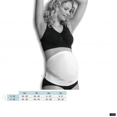 Bæltet er ganske enkelt at tage på, vokser-med-maven, og kan justeres individuelt til størrelse og behov for støtte.