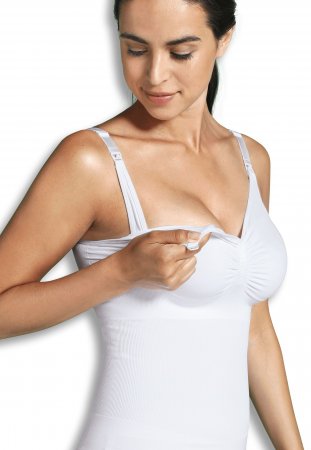 Kombineret sømløs ammetop og amme BH i hvid fra Carriwell.