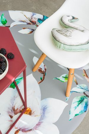 Rund gråt underlag med flotte blomster til spisetid og leg fra Everleigh & Me.