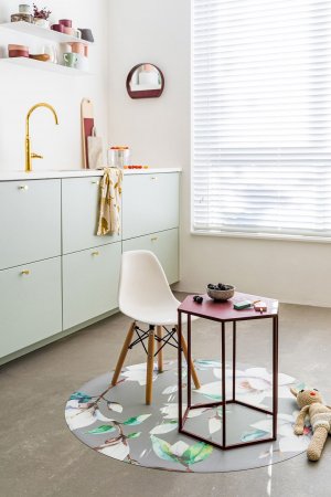 Smart, flot og skridsikker underlag til højstolen, der sikrer, at den står stabilt på gulvet, uden at ryge baglæns, når barnet forsøger at skubbe stolen væk fra bordet. Måtten skåner samtidig gulvet for mælk og madrester, når det går lidt vildt for sig. Den er let at tørre af efter brug. Brug eventuelt filtpuder under højstolen for at skåne underlaget for unødvendige ridser.
