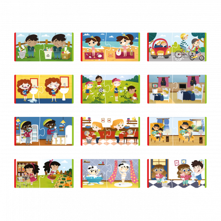 Puslespillet består af små mini-gåder, der lærer børn den mest miljørigtige og hensynsfulde måde at gøre ting på. Brikkerne har farvede kanter og passer sammen to og to. Grøn for miljørigtig opførsel og rød for uhensigtsmæssig adfærd.