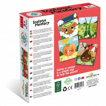 Skønt memoryspil i flotte farver med frugt og grøntsager fra Adventerra Games serien - Save the Planet.