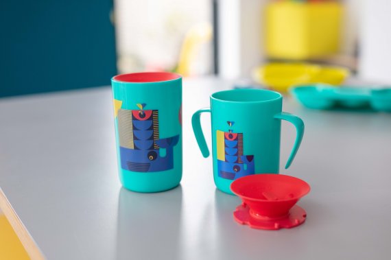 Koppen har et enkelt låg uden små dimser, som er let at rengøre. En fantastisk tud der støtter barnets orale udvikling og drikkefÊrdigheder bedre.