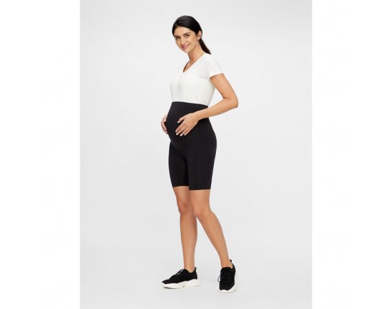 Shortsen er fremstillet i en blød og strækbar kvalitet, og kan på grund af sin elasticitet anvendes under hele graviditeten.