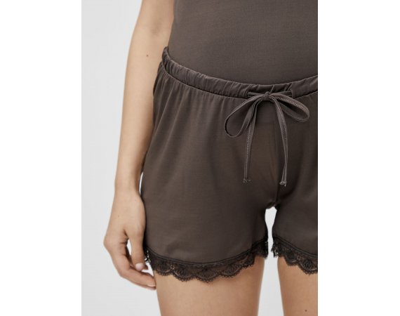 Shortsen har flotte blondekanter i benene og bindebånd i livet, der kan tilpasses din mave.