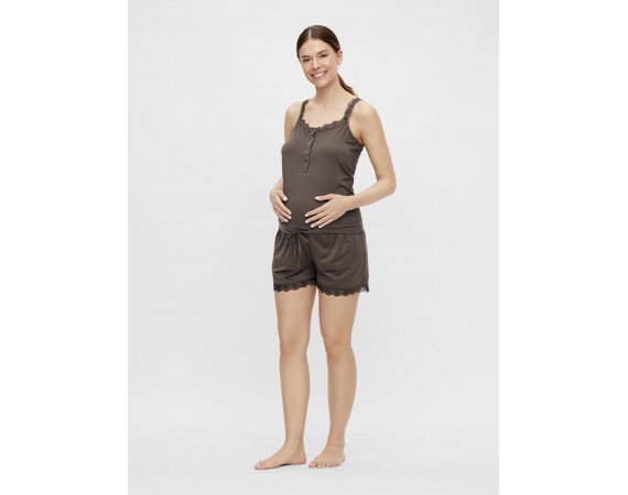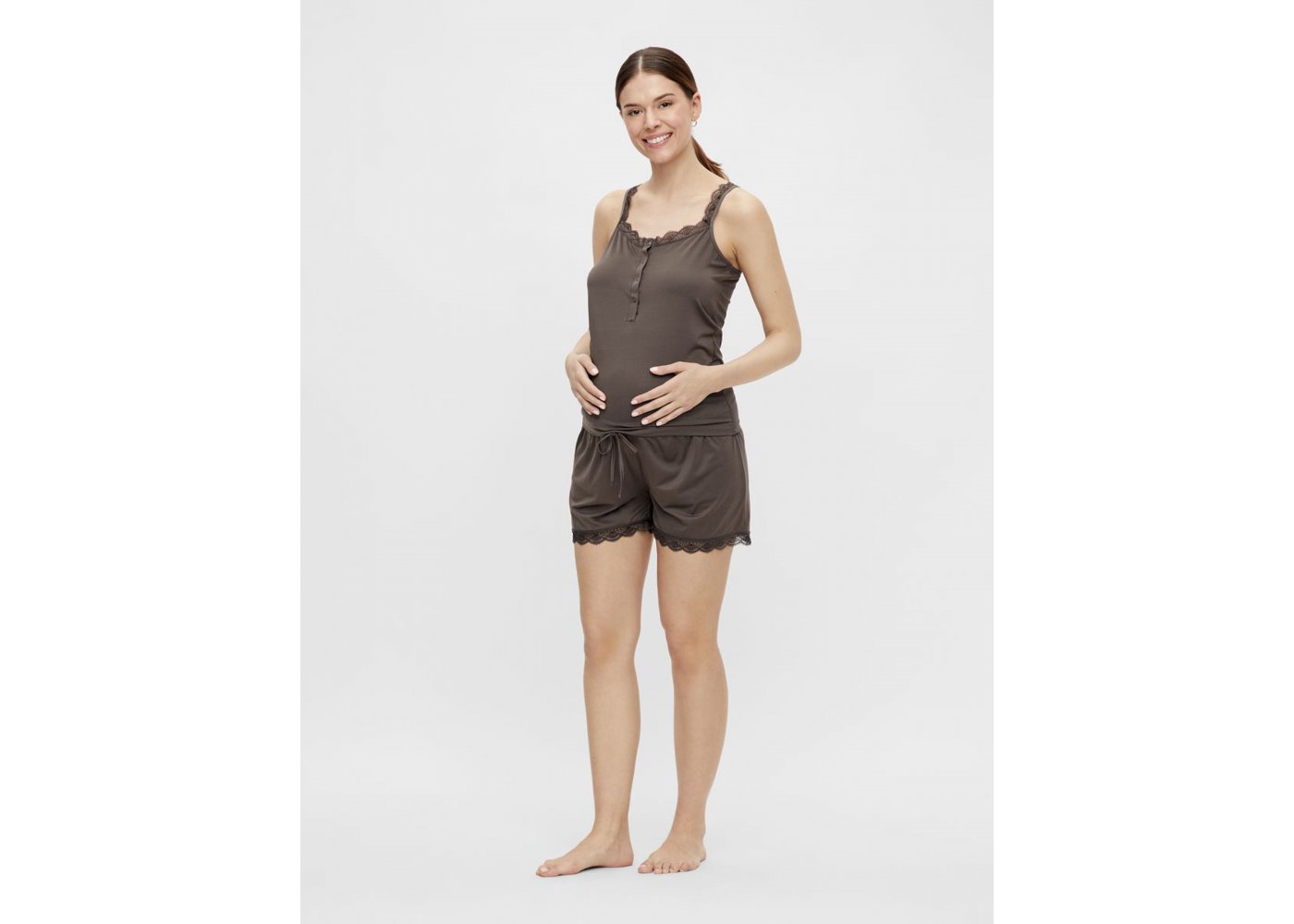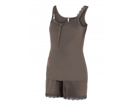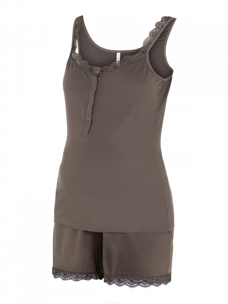 Super skøn og feminin grå graviditets pyjamas med blonde detaljer fra Mamalicious.