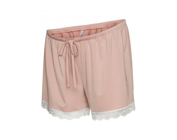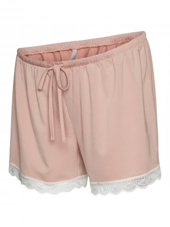 Shortsen har flotte blondekanter i benene og bindebånd i livet, der kan tilpasses din mave.