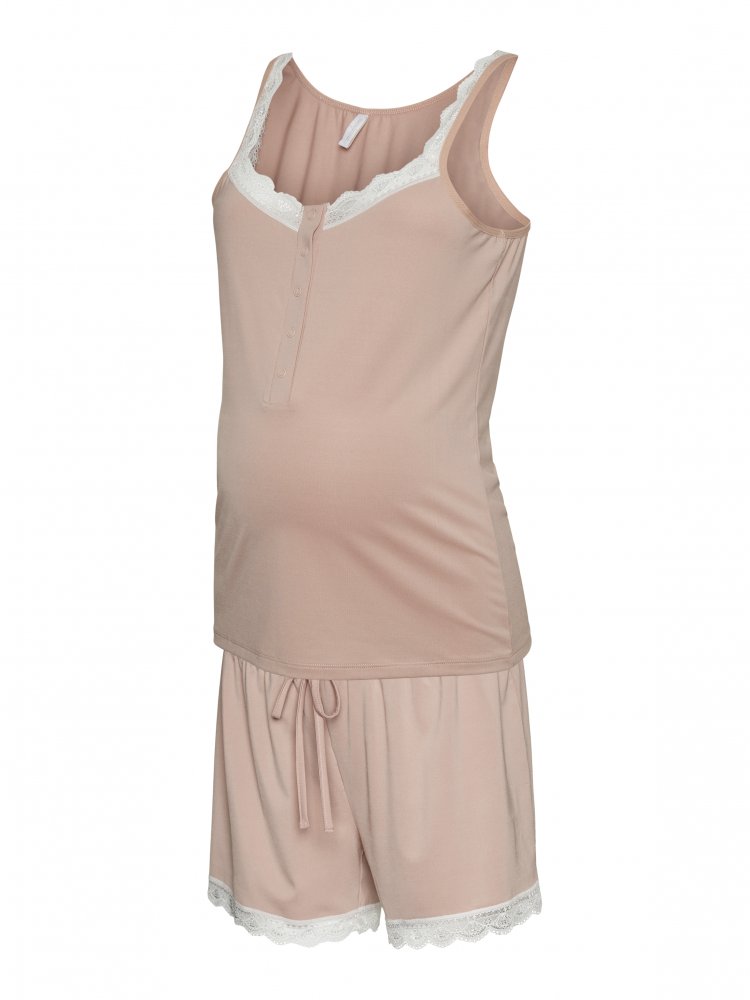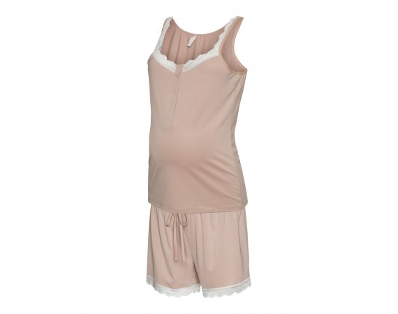 Super skøn og feminin rosa graviditets pyjamas med blonde detaljer fra Mamalicious.