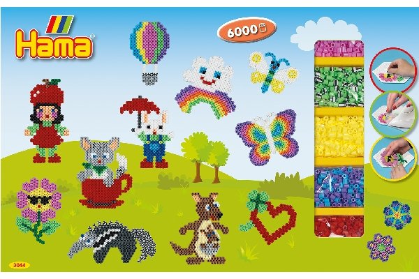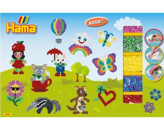 Gaveæskens indhold på hele 6000 rørperler og fine perleplader, er nok til at lave flotte figurer. Hama perlerne kan selvfølgelig også altid bruges til at lave flotte halskæder af, og sidst men ikke mindst fylder de ikke ret meget, og er lette at tage med til underholdning på ferie - de er perfekte til mange timers leg.