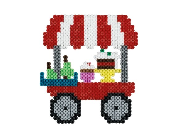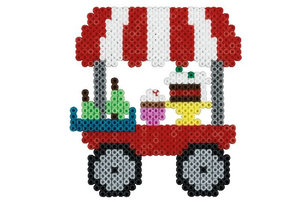 Gaveæsken markedsplads leveres med ca. 4.000 perler, 2 store firkantede perleplader nr. 234. Desuden motivark, vejledning og strygepapir.