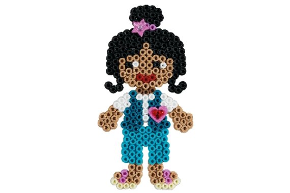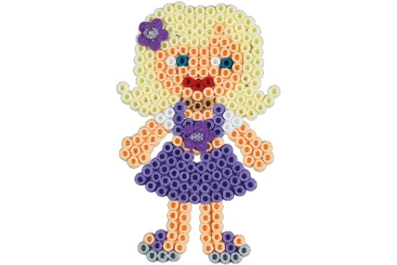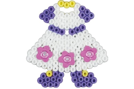 Gaveæsken med påklædningsdukker leveres med ca. 4.000 perler, 1 dukke perleplade nr. 330, 2 Hama Gems, 2 ark mosgummi, 1 Hama konnektor. Desuden motivark, vejledning og strygepapir.