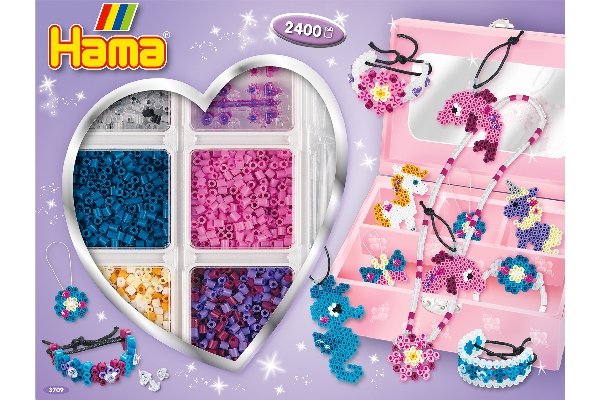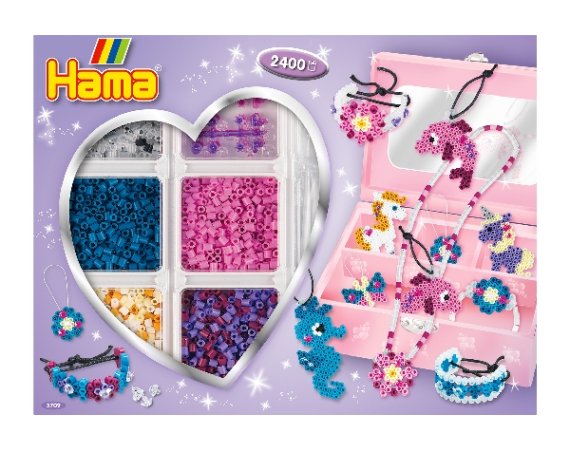 Aktivitetsæskens indhold på hele 2400 perler og tilbehør giver rig mulighed for at kreere flotte gaver. Hama perlerne kan selvfølgelig også altid bruges til at lave flotte halskæder af, og sidst men ikke mindst fylder de ikke ret meget, og er lette at tage med til underholdning på ferie - de er perfekte til mange timers leg.