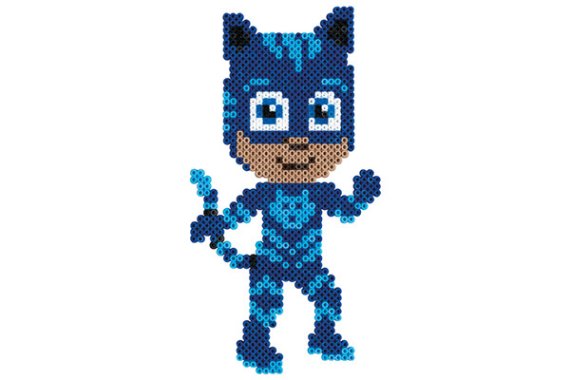Denne skønne gaveæske med Pyjamasheltene leveres med ca. 4.000 perler, 2 store firkantede perleplader nr. 234TR. Desuden motivark, vejledning samt strygepapir.