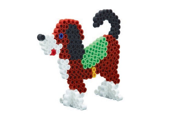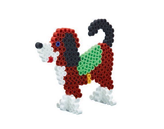 Denne skønne maxi gigant gaveæske gul leveres med 900 maxi perler, 2 gennemsigtige perleplader, hund nr. 8202 og en rund nr. 8220, 3 stk. perlefødder, motivark, vejledning og strygepapir.